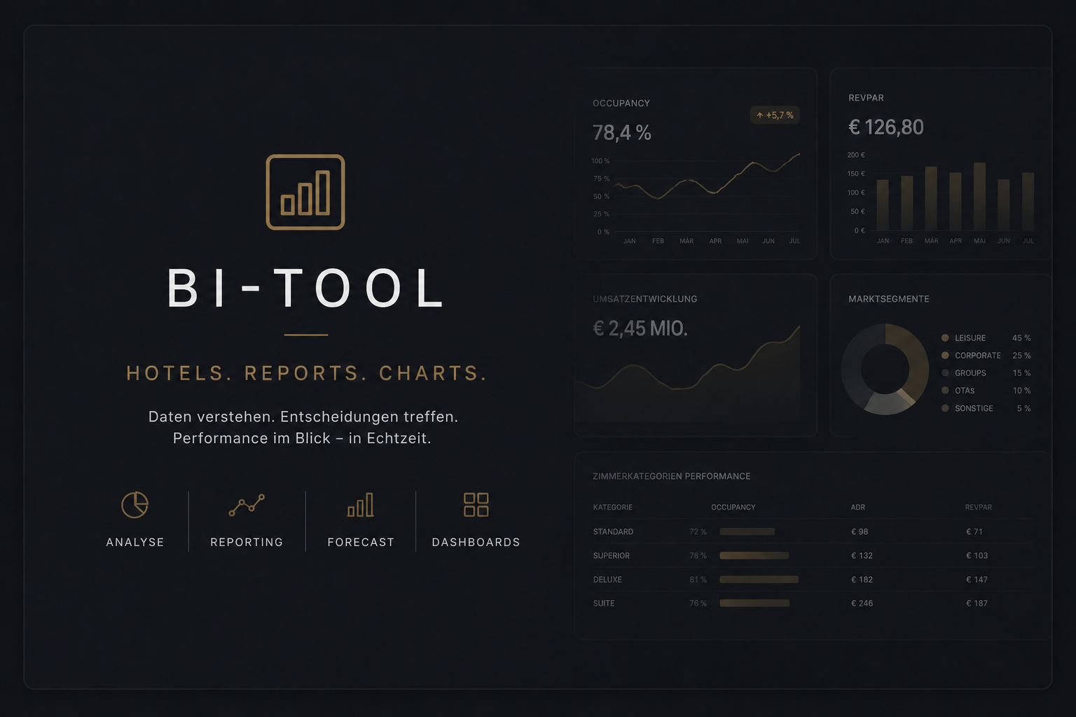 - Analyse- & Reportingtools für Marketing, Umsätze, BI und Buchhaltung